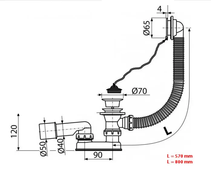 Pro vany s odtokovým otvorem Ø52 mm.