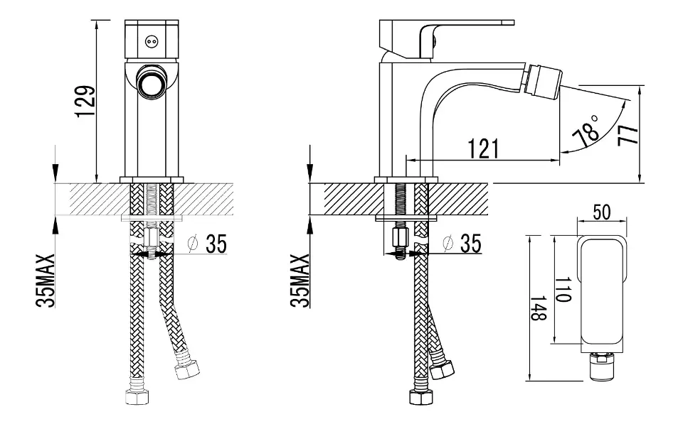Stojánková bidetová baterie, bez výpusti
