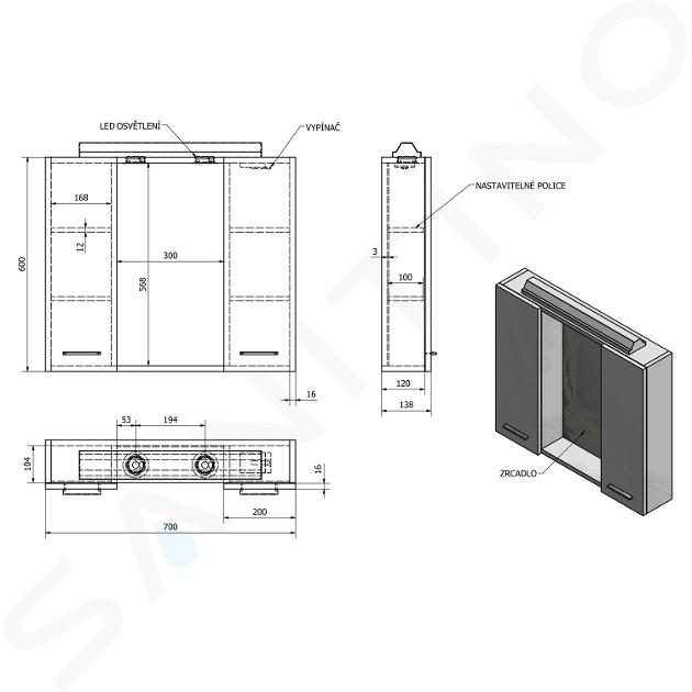 Horní zrcadlová skříňka s LED osvětlením
