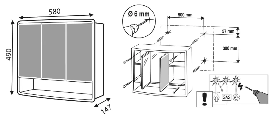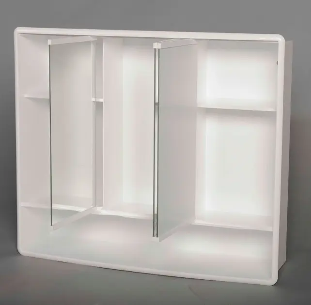 Tato galerka je vyrobena z kvalitního plastu, který je nenáročný na údržbu a svými vlastnostmi se perfektně hodí do koupelen, protože je odolný vůči působení vlhkosti. Skříňka je vybavena třemi dvířky se zrcadly, přičemž oba krajní prostory za zrcadly jsou zařízeny vestavěnými policemi a třetí, středová část je bez polic. Do středové části se tak vejdou i vyšší koupelnové potřeby a do částí po stranách umístíte vše ostatní. Pro ty propriety, které potřebujete mít nejvíce při ruce, můžete využít otevřený prostor pod zrcadly. Tato otevřená polička slouží nejen jako odkládací prostor, ale můžete sem například umístit i nejrůznější dekorace. Skříňka je určena k instalaci na stěnu a její montáž je velmi snadná.
