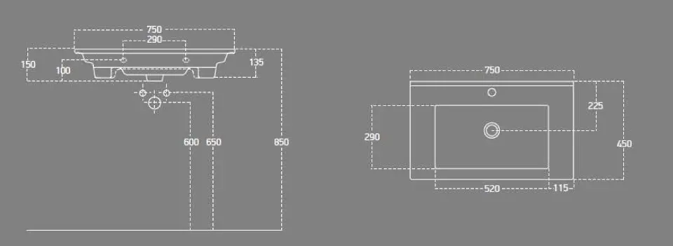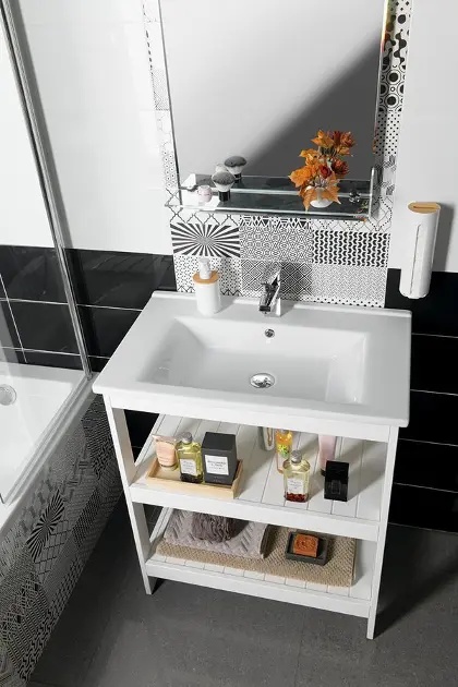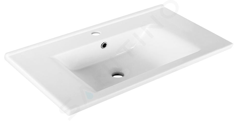Toto umyvadlo je vyrobeno ze sanitární keramiky, což je přírodní materiál s extrémně vysokou životností. Její bílá barva působí dojmem čistoty a jemnosti, je odolná vůči každodennímu použití a její údržba je velmi snadná. Umyvadlo je vybaveno přepadem a otvorem pro baterii. Je určeno k zapuštění do koupelnové skříňky, což představuje velmi moderní a vkusné řešení. Díky tomuto řešení umyvadlo opticky plynule přechází ve skříňku, což působí jednotným a celistvým dojmem. Další výhodou jsou úložné prostory, které takto získáte, a rovněž sifon schovaný ve skříňce, který tak esteticky nenarušuje prostor koupelny.