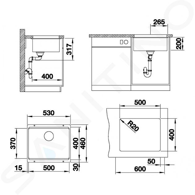 Dřez je vyrobený z vysoce kvalitního materiálu SILGRANIT® PuraDur®. Blanco Etagon 500 je navržený pro spodní montáž pod pracovní desku do spodní skříňky s minimální šířkou 600 mm. Jeho součástí je stupínek, který vytváří další funkční úroveň uvnitř dřezu. Celkový rozměr dřezu je 530 x 460 mm, rozměr samotného dřezu činí 500 x 400 mm a hloubka dřezu je 200 mm.