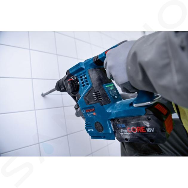 Toto vrtací kladivo je ideální na příklepové vrtání do betonu, kamene a zdiva. Je kompatibilní se všemi akumulátory a nabíječkami v profesionálním 18V systému Bosch. Pro bezprašné a bezpečnější pracovní prostředí lze k nářadí snadno připojit vysavač GDE 18V-16 Professional. Vyznačuje se rovněž háčkem na ukládání a světlem LED.