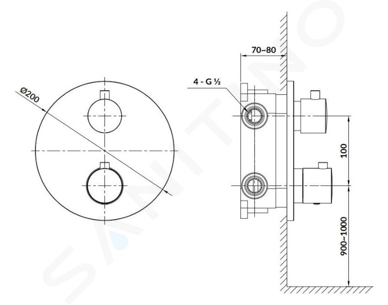 Podomítkový termostat, s tělesem