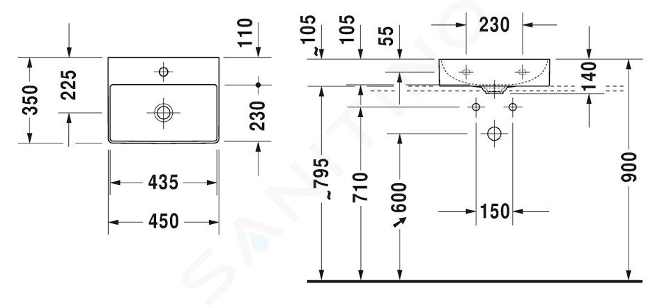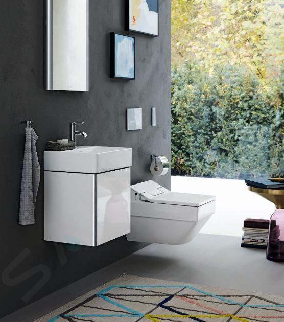 Umývátko Duravit DuraSquare se perfektně hodí do koupelen s omezeným prostorem, případně na toalety. Má rozměry 450 x 350 x 140 mm. Neuzavíratelná výpusť s keramickou krytkou je součástí balení.