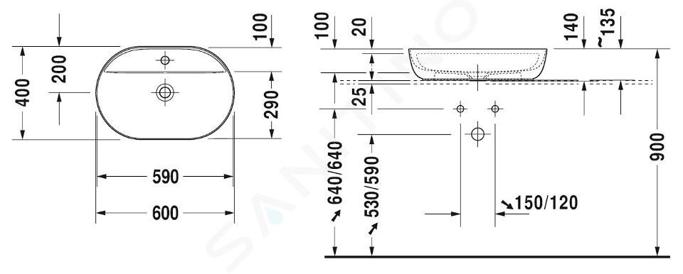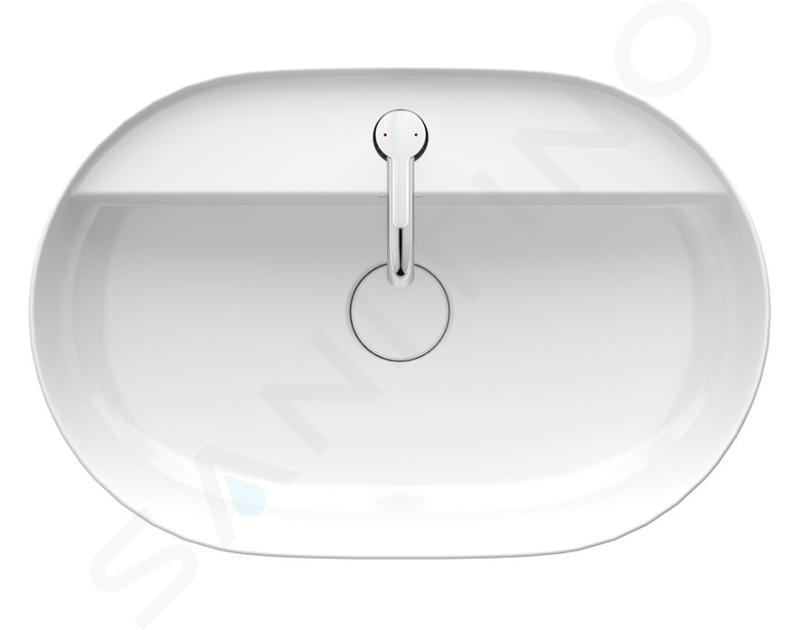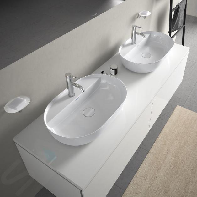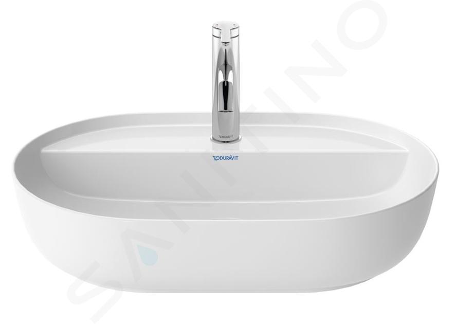 Umyvadlo na desku v alpské bílé barvě nabízí široký prostor k mytí rukou. Jeho rozměry jsou 600 x 400 x 140 milimetrů. Na podkladu dobře sedí díky broušené spodní straně. Na jeho výrobu byl použit speciální materiál DuraCeram, který exkluzivně vyvinula společnost Duravit. Výrobek je tedy pevný a barevně i tvarově stálý.
