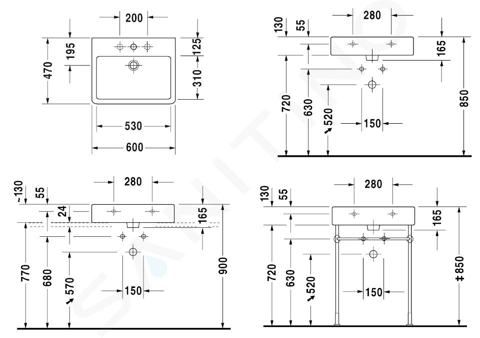 Duravit Vero má 1 otvor pro baterii, rozměry umyvadla jsou 600 x 470 x 165 mm.