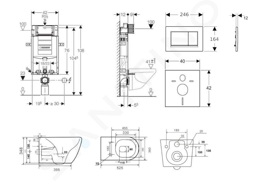 Předstěnový instalační modul Kombifix pro závěsné WC se splachovací nádržkou Sigma 12 cm