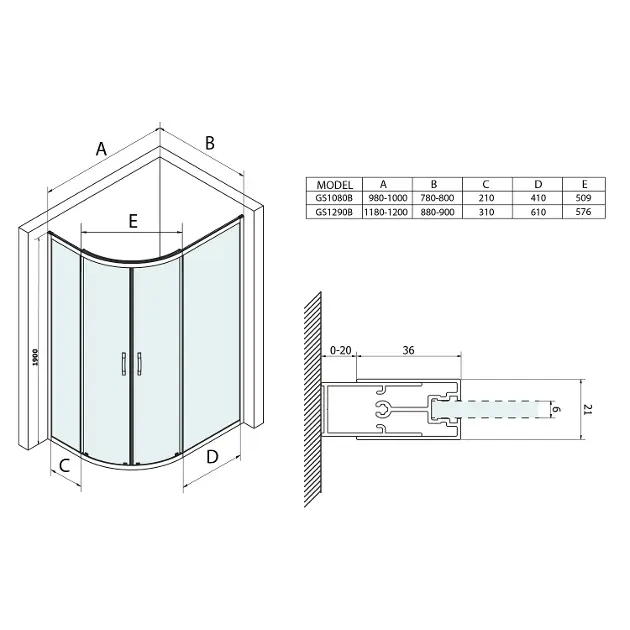 Čtvrtkruhový sprchový kout