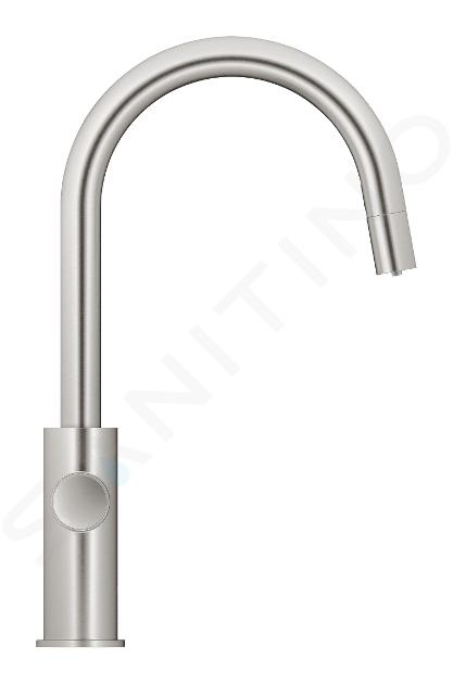 Kuchyňská baterie GROHE Connected na první pohled uchvátí svým moderním designem i zajímavou povrchovou úpravou supersteel, která dodá kuchyni nádech nevšednosti a jedinečnosti. Vysoká výpusť ve tvaru „C“ umožňuje snadné napouštění vysokých nádob i snadnou práci v prostoru dřezu. Příjemný je i vytahovací perlátor. Kuchyňská baterie má dva ovládací prvky – páku, která poskytne běžnou kohoutkovou vodu, například pro mytí nádobí či opláchnutí potravin a otočnou rukojeť, která poskytuje filtrovanou vodu, případně chlazenou a s možností variant perlivá, neperlivá či jemně perlivá. Přívody vody jsou v baterii vedeny zvlášť, filtrovaná voda se tedy s ničím již nemísí.