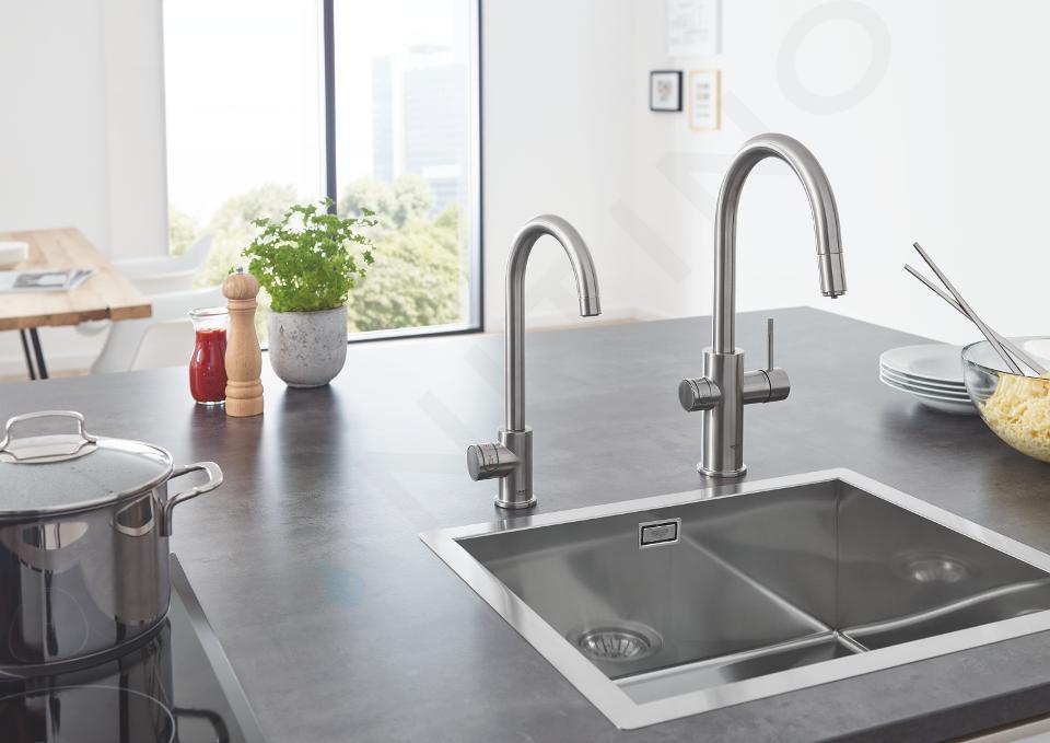 Baterie GROHE Blue Home Duo poskytuje jak klasickou, tak filtrovanou vodu