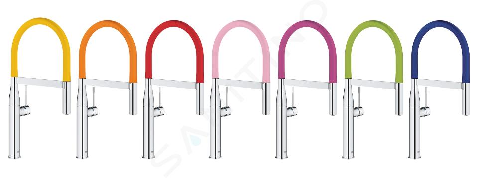 Dřezová baterie Grohe s flexibilním ramenem, v barvě Cool Sunrise, nabízí kombinaci elegance a funkčnosti, tak jako celá řada Essence. Osvědčená technologie SilkMove s 28 mm keramickou kartuší zajišťuje plynulou regulaci teploty a proudu vody, zatímco robustní PVD povrch odolává opotřebení. Flexibilní hygienická silikonová hadice GROHFlexx v černé barvě a profesionální sprška s automatickým přepínáním na perlátor usnadňují práci v kuchyni.