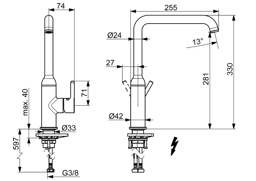 Kuchyňská stojánková baterie pro beztlakové ohřívače