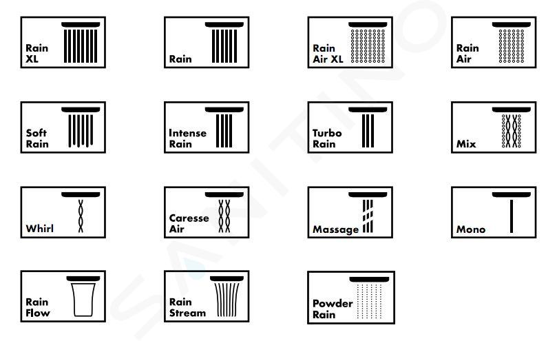 Čím menší jsou otvory na ruční nebo horní sprše, tím větší mají účinek. Sprchový proud Rain oživuje a osvěžuje svým příjemně energickým způsobem, který prýští na celé tělo. Z tohoto důvodu se obzvláště hodí například k rychlému a důkladnému smytí šamponu.