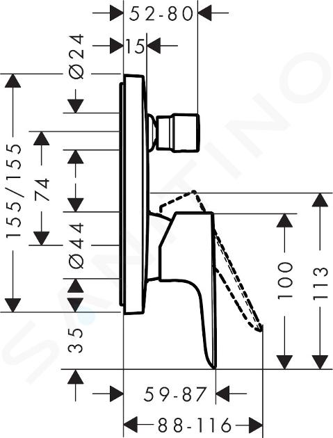 Baterie má zabudovanou bezpečnostní kombinaci, která splňuje mezinárodní standardy dle normy EN1717. Podomítková vanová baterie hansgrohe Talis E je určená k instalaci na základní montážní těleso. Není součástí dodávky. Objednejte si jej proto zvlášť.