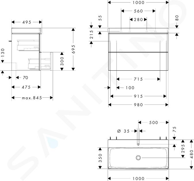 Skříňka s umyvadlem Xelu Q 980/475