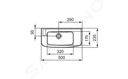 Netradiční na něm je i to, že nemá otvor pro umyvadlovou baterii. Hodí se k němu proto umyvadlová baterie pod omítku.