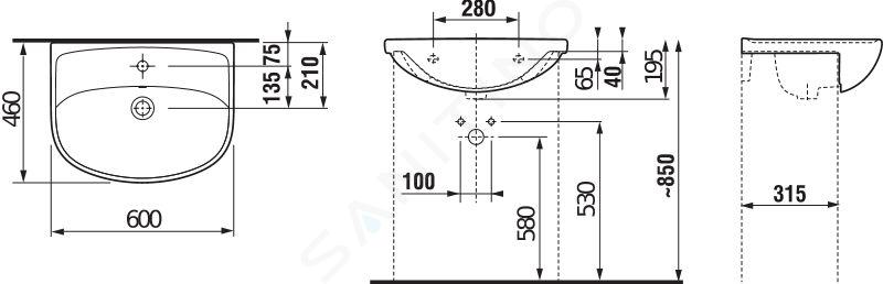 Umyvadlo nábytkové 60 cm bez otvoru pro baterii
