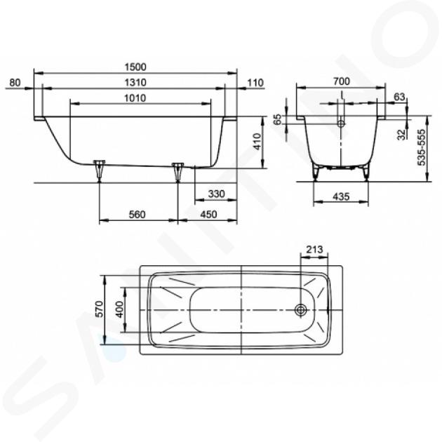 Vanové nožičky a vanový sifon nejsou součástí dodávky.