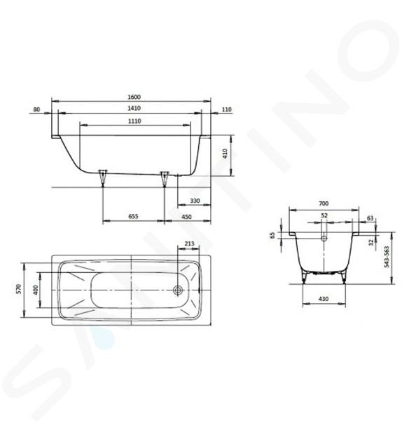 Vanové nožičky a vanový sifon nejsou součástí dodávky.