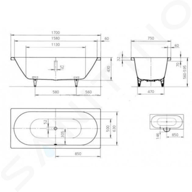 Vanové nožičky, madlo a sifon nejsou součástí dodávky.