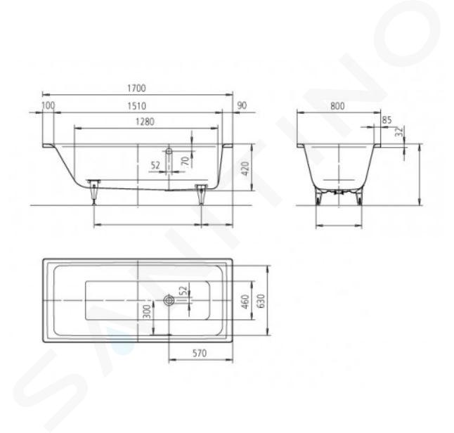 Vanové nožičky a vanový sifon nejsou součástí dodávky.