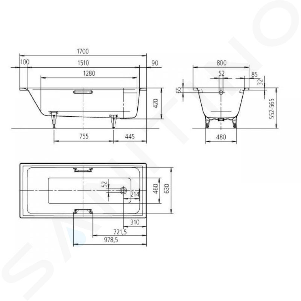 Vanové nožičky, madla a vanový sifon nejsou součástí dodávky.