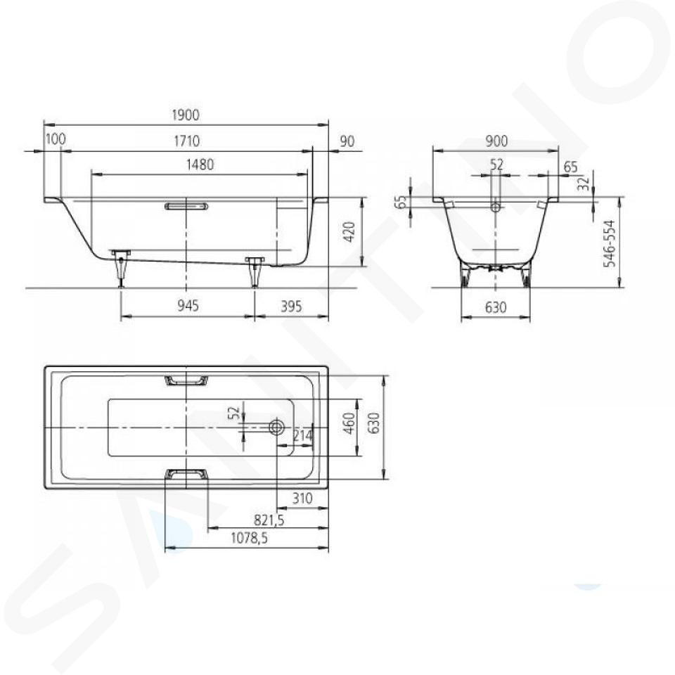 Vanové nožičky, madla a vanový sifon nejsou součástí dodávky.