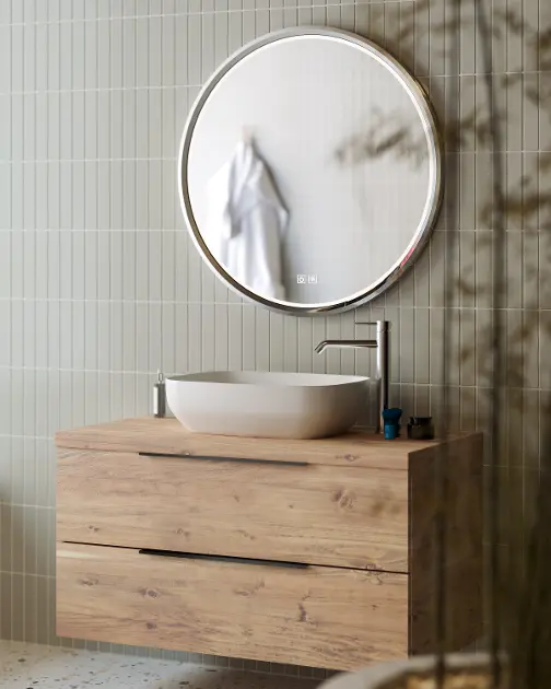 Sanitární keramika kielle Idolio je k dispozici v bílé barvě, ale také působivém antracitu. Společně s koupelnovým nábytkem (tři druhy povrchů) vytváří vizuálně působivou atmosféru s důrazem na praktickou stránku. K dispozici jsou podumyvadlové skříňky různých rozměrů i provedení, závěsné skříňky, ale též samostatná deska pod umyvadlo. Zrcadla kielle Idolio (kulatá i hranatá) nabízí LED osvětlení, ale také funkci odmlžování či stmívání.