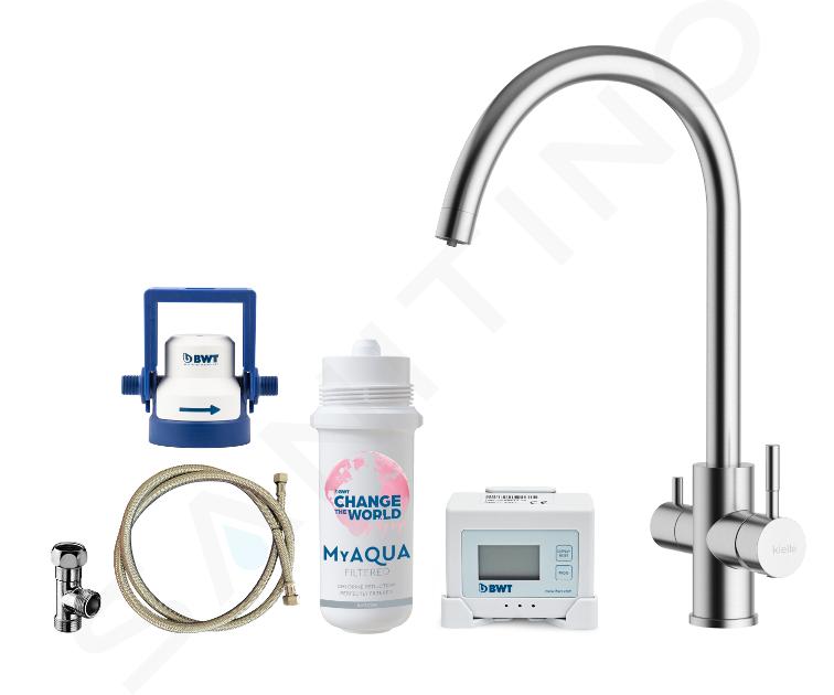 Pozvedněte své možnosti a pořiďte si do kuchyně filtrační dřezovou baterii, která je schopna vám nabídnout jak běžnou vodu z vodovodního řadu, tak vodu filtrační. Zajímavou volbou může být set obsahující nejen nerezovou verzi baterie ze série kielle Wimeo, ale také filtr MyAQUA Filtered Taste.