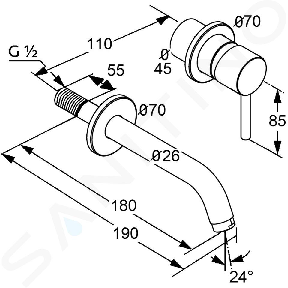 Podomítková páková umyvadlová baterie