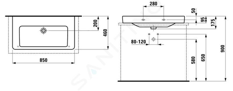 Umyvadlo bez otvoru pro baterii, s přepadem.
