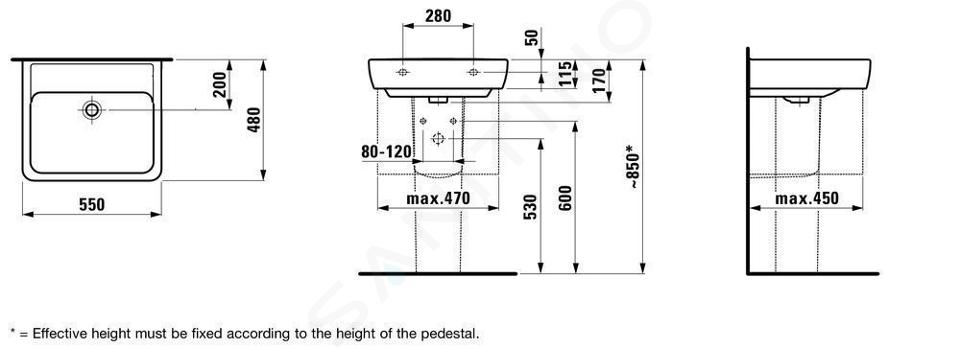 Umyvadlo bez otvoru pro baterii, s přepadem