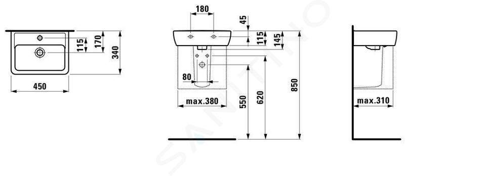 Umývátko s jedním otvorem pro baterii, s přepadem