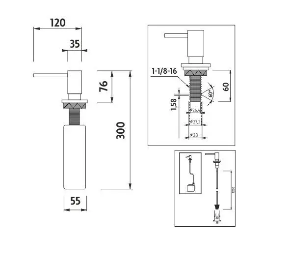 Vestavný dávkovač na tekuté mýdlo, dezinfekční gel nebo prostředek na mytí nádobí