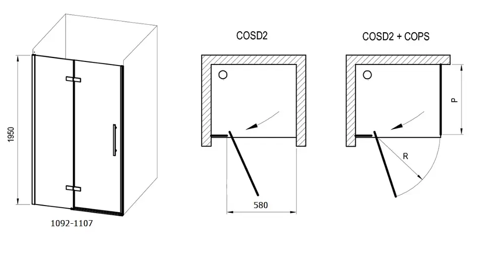 Použitím nastavovacího profilu CONPS lze sprchové dveře rozšířit o 25 mm.