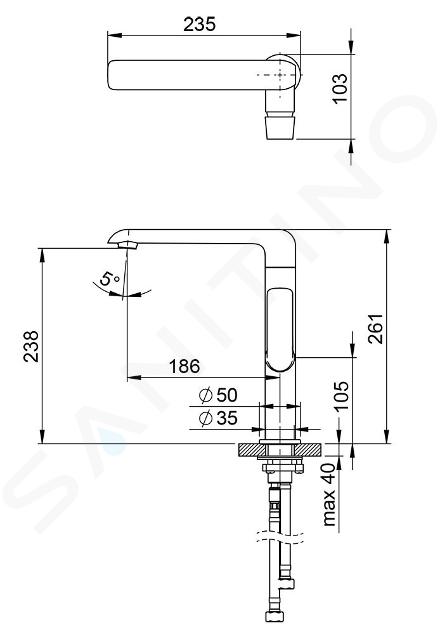 Kuchyňská stojánková baterie bez výpusti