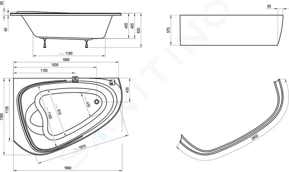 Při sprchování nelze vzhledem k designovému tvaru vany plně zabránit odkápávání vody z lemů, které nejsou vyspádovány dovnitř.