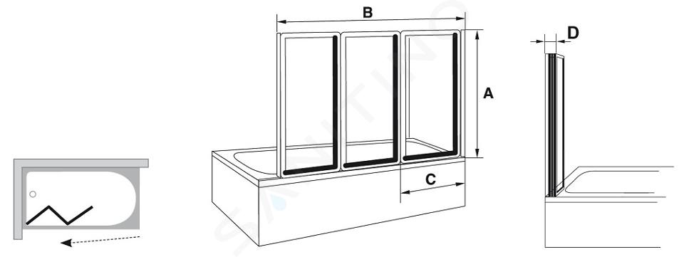 Vanová zástěna skládací třídílná