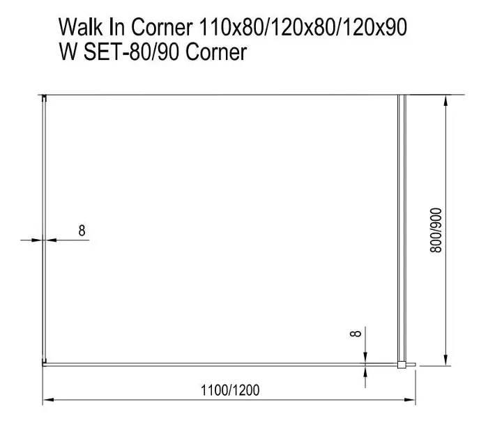 Pro plnou funkčnost výrobku je nutné zvlášť dokoupit W SET-80 Wall/Corner s úchyty a kovovou vzpěrou. Set bezpečně udrží velké skleněné plochy na svém místě a zajistí stabilitu celého koutu.