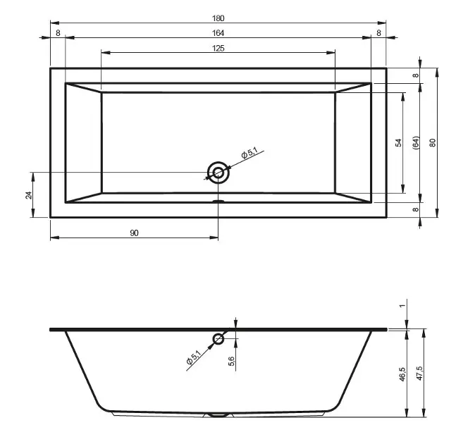 Odtoková a přepadová souprava ani podpora vany není součástí balení.