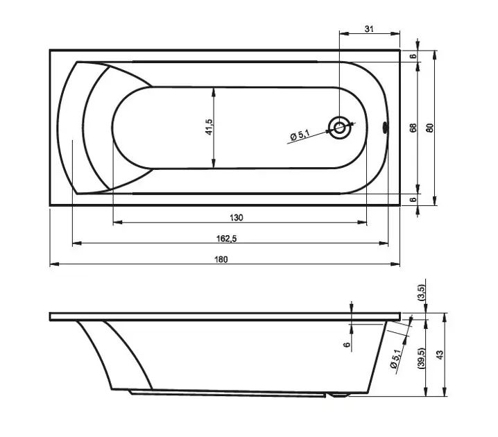 Odtoková a přepadová souprava ani podpora vany není součástí balení.