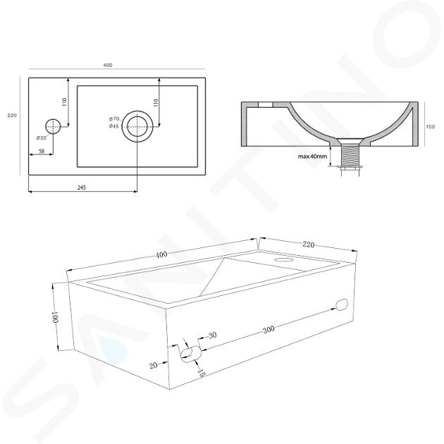 Závěsné betonové umývátko Crest, bez přepadu