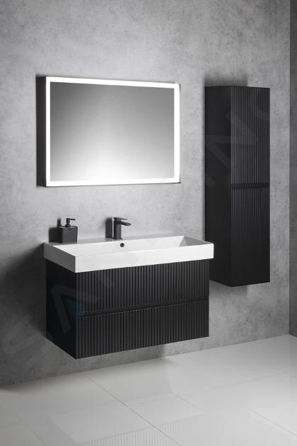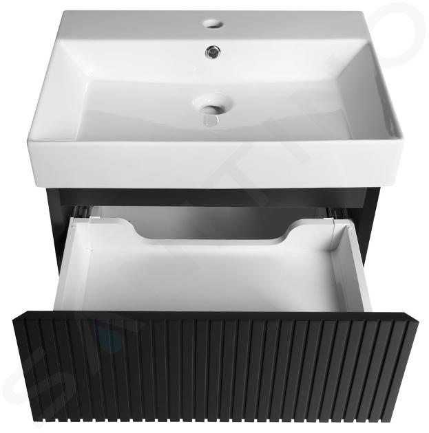 Koupelnový nábytek Sapho Filena, to jsou skříňky s čistými liniemi a příjemným dekorem. Zvláštností je ostře zkosená hrana čel zásuvek, která vytváří zajímavou tenkou linii. Pod linií nacházíme otvor, jímž jde zásuvku pohodlně otevřít. Skříňky a skříně Filena se tak obejdou bez úchytek.