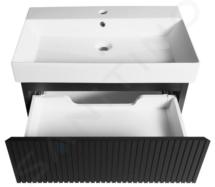 Koupelnový nábytek Sapho Filena, to jsou skříňky s čistými liniemi a příjemným dekorem. Zvláštností je ostře zkosená hrana čel zásuvek, která vytváří zajímavou tenkou linii. Pod linií nacházíme otvor, jímž jde zásuvku pohodlně otevřít. Skříňky a skříně Filena se tak obejdou bez úchytek.