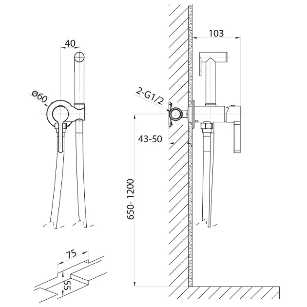 Bidetová podomítková baterie, s tělesem a příslušenstvím