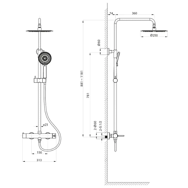 Sprchový systém se skládá z: