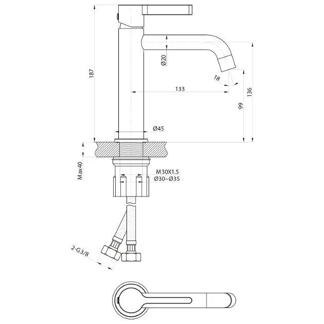 Stojánková umyvadlová baterie, bez výpusti
