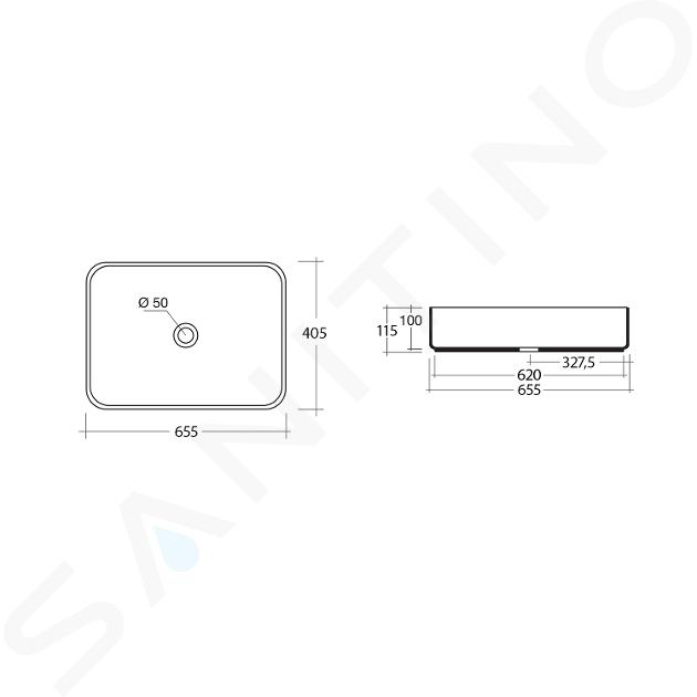 Keramické umyvadlo Blade, bez otvoru a bez přepadu, vhodné na desku