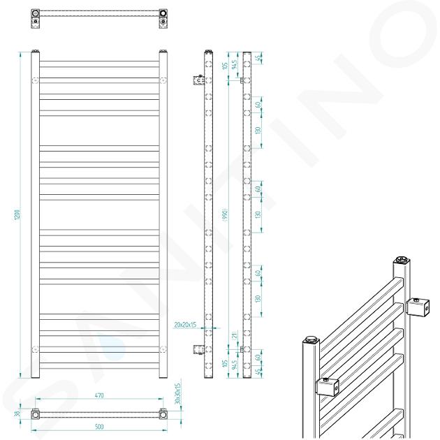 • topná tyč a připojovací ventily nejsou součástí balení